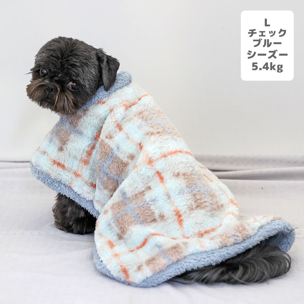 シーズー5.4kg(首26/胴38/丈38cm)のつぶくんはチェックブルーのLを着用
