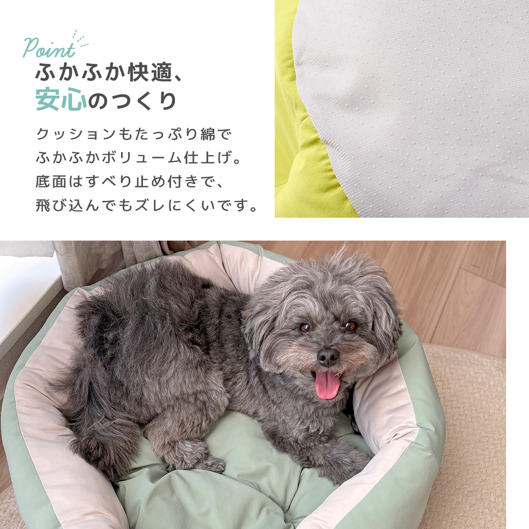 底面はすべり止め付きで、ペットが飛び込んでもズレにくく仕上げました。