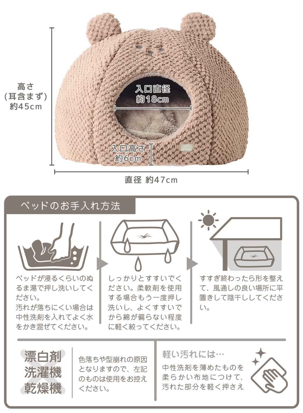 - 直径47cm×高さ45cm / 入口:直径18cm / 入口高さ:6cm