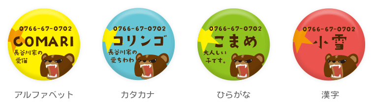 愛犬・愛猫が万が一、迷子になったときのために… iDogオリジナル柄のかわいい迷子札はいかがですか♪ 小さなコイン型の丸いプレートに可愛い絵柄が入っていて、 一見迷子札には見えないくらい、とってもオシャレです! 絵柄の中に、ワンちゃんの名前や電話番号などを 入れて、貴方だけの1枚をお作りします。