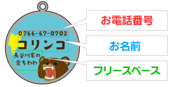 【お名前】【お電話番号】【フリースペース】の部分に入れたい文字を、必ず備考欄に記入しご注文下さい。