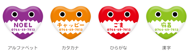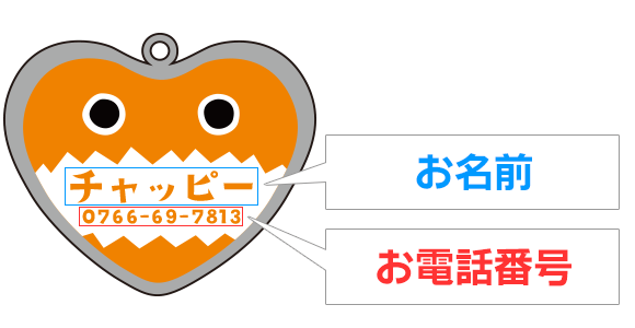 愛犬・愛猫が万が一、迷子になったときのために… iDogオリジナル柄のかわいい迷子札はいかがですか。 小さなハート型のプレートに可愛い絵柄が入っていて、 一見迷子札には見えないくらい、とってもオシャレです。 絵柄の中に、ワンちゃんの名前や電話番号などを入れて、貴方だけの1枚をお作りします。