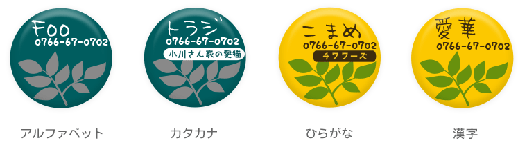 愛犬・愛猫が万が一、迷子になったときのために… iDogオリジナル柄のかわいい迷子札はいかがですか♪ 小さなコイン型の丸いプレートに可愛い絵柄が入っていて、 一見迷子札には見えないくらい、とってもオシャレです! 絵柄の中に、ワンちゃんの名前や電話番号などを 入れて、貴方だけの1枚をお作りします。