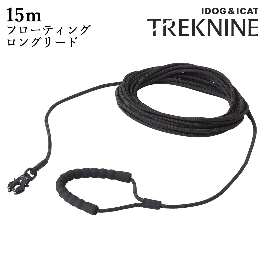 TREKNINEの フローティングリード 15mはお出かけ時や愛犬のトレーニング時にもピッタリのスタンダードなデザインのリードです。