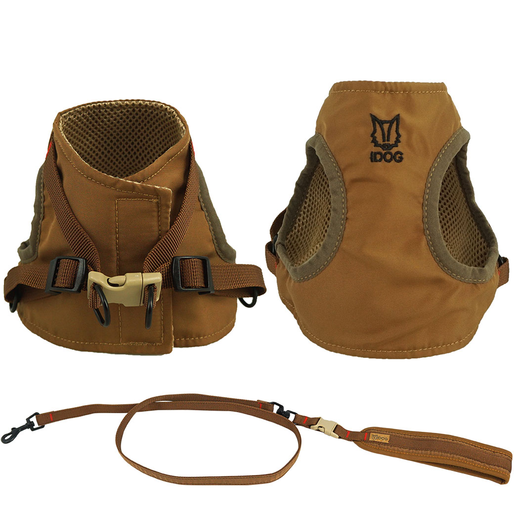 愛犬を包み込む優しいベストハーネスで楽々ウォーク。 アースカラーでまとめたアウトドア風デザイン。
