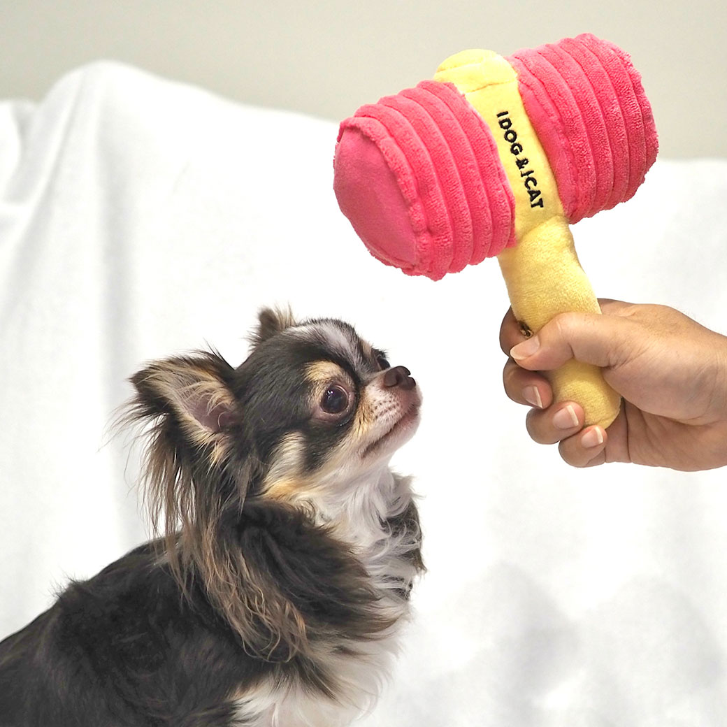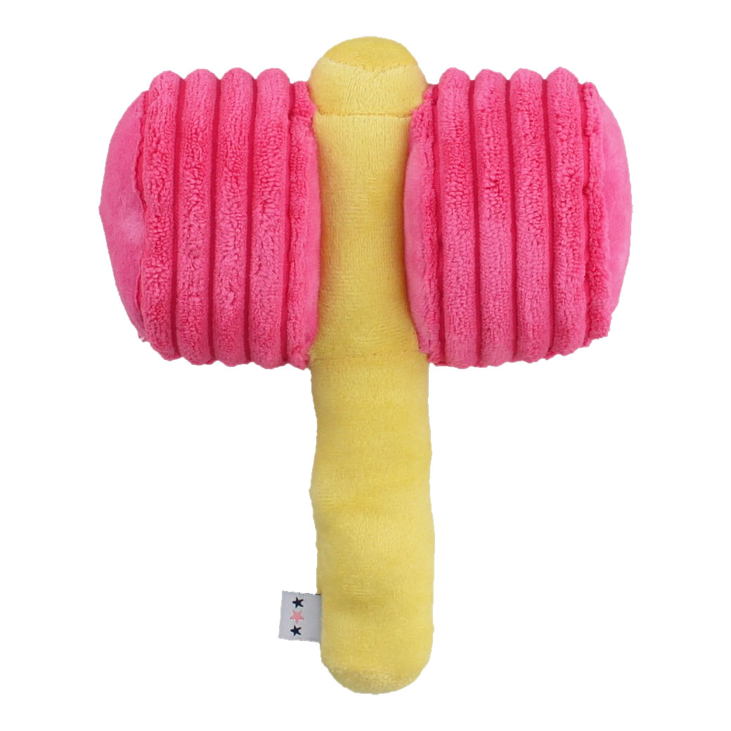 ピコピコハンマー型のユニークな布製おもちゃ。 カシャカシャと鳴き笛入りでテンションUP。