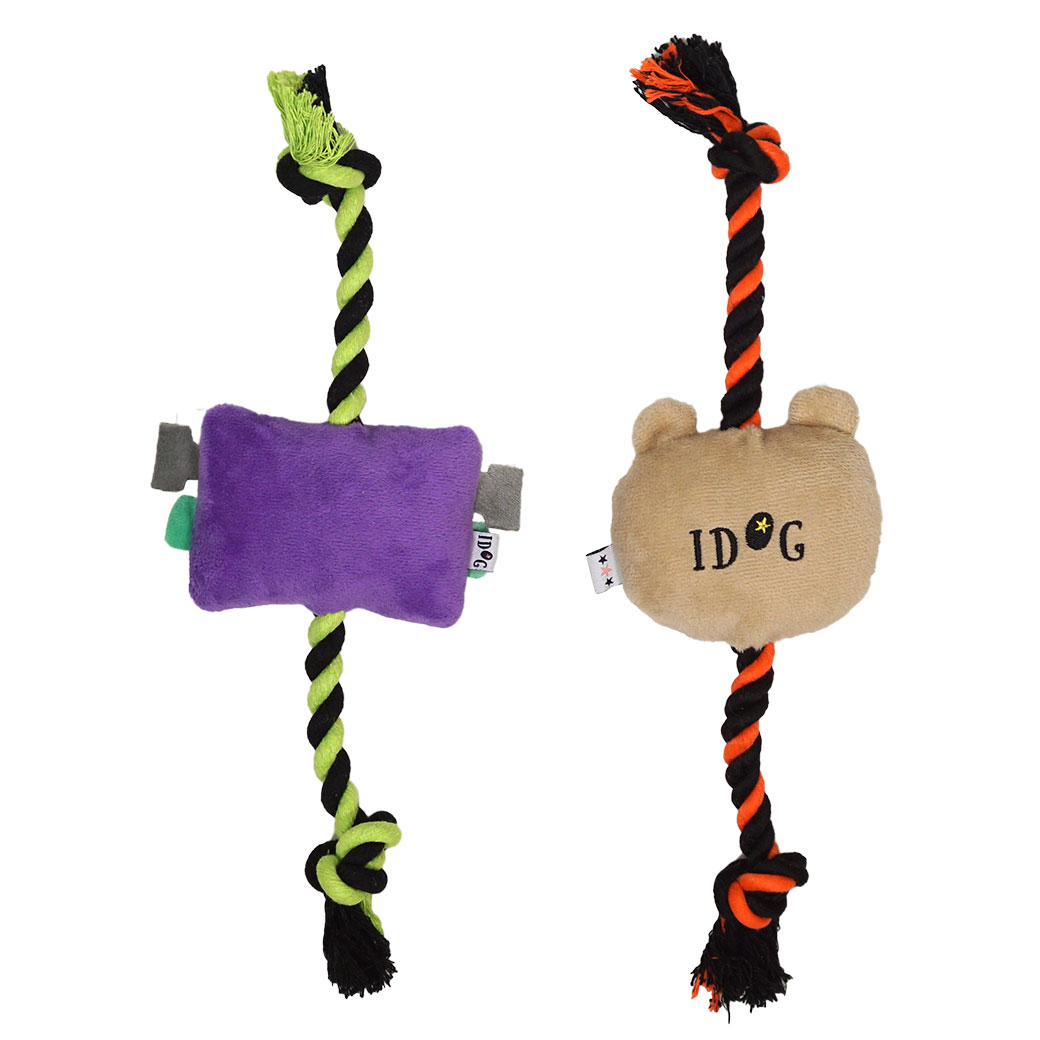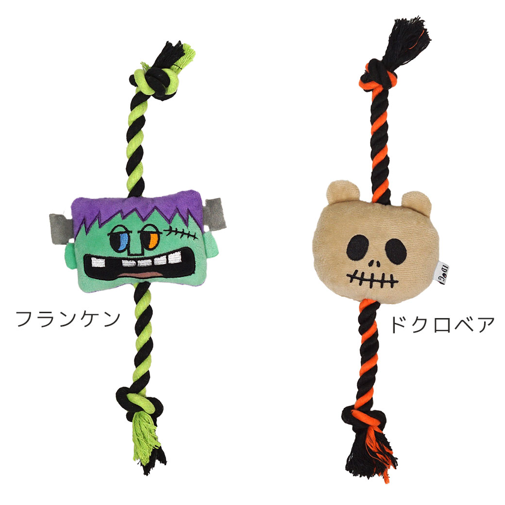 フランケン&くまドクロのポップでちょっぴりホラーなお顔が印象的な、ロープ付き犬用おもちゃ。 ロープトイは、ひっぱり遊びやカミカミにもぴったり!