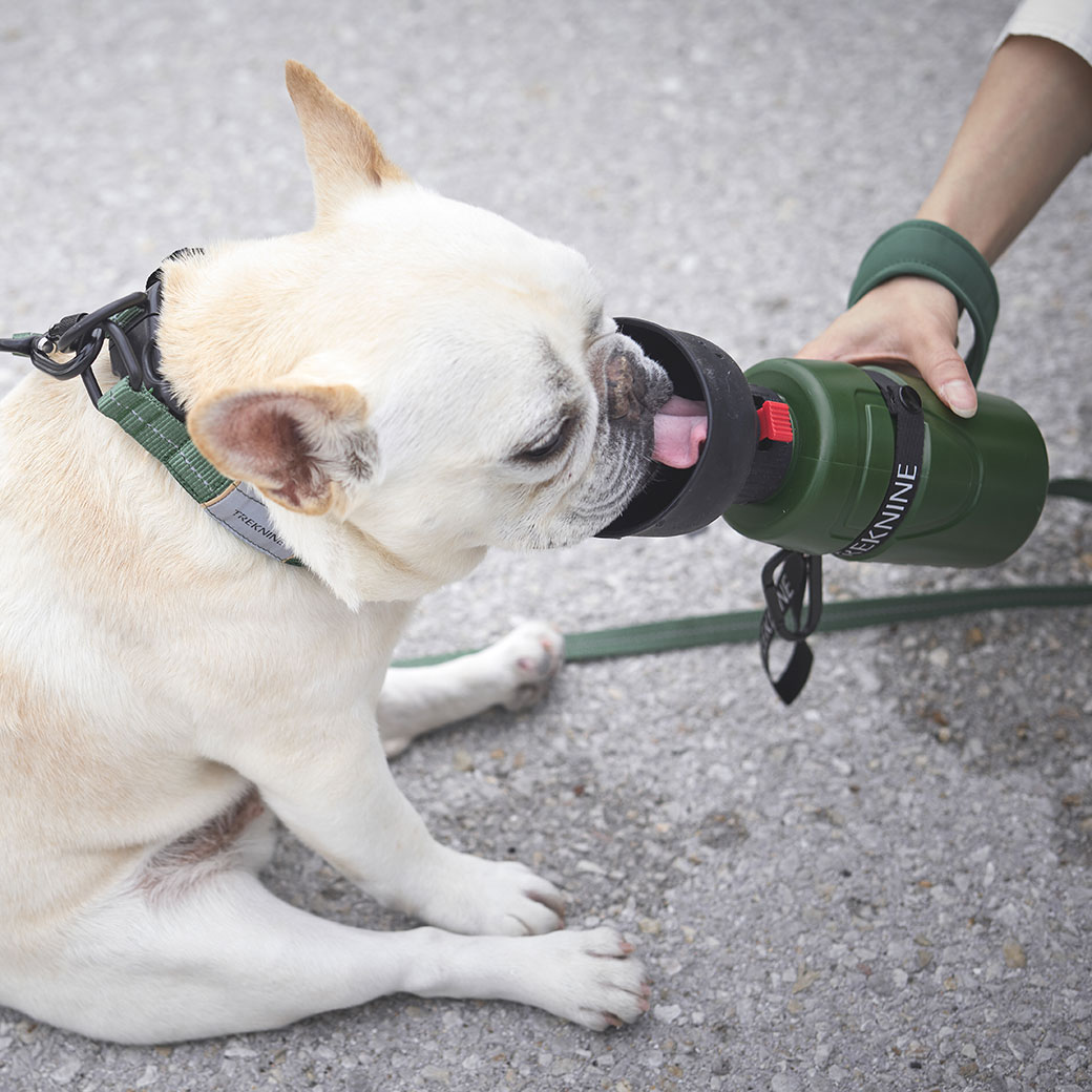 水筒とボウルが合体している給水ボトル。 いつでもどこでも手軽に水分補給。