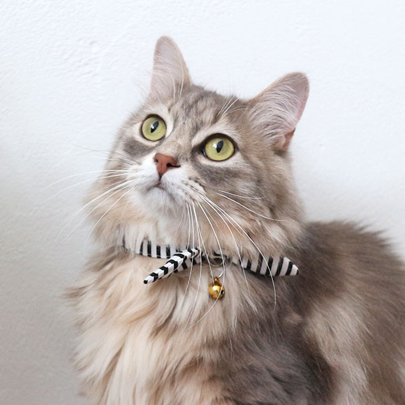 猫ちゃんのための安全でキュートな布製カラー。 ポップな柄とリボン付きの首輪で首元が華やかに。