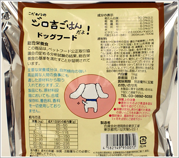 - 給与量は、愛犬の年齢・体質・活動量などの必要に応じて調整して下さい。