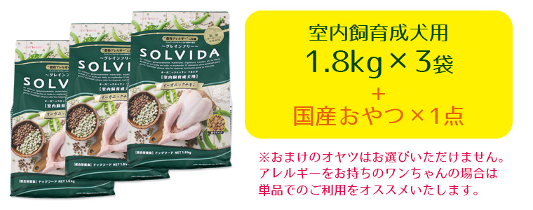 - 1.8kg×3袋、国産おやつ1点