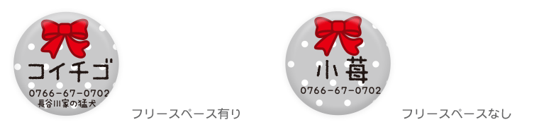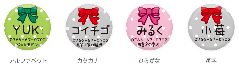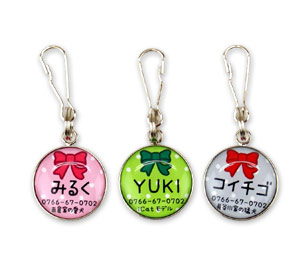 愛犬・愛猫が万が一、迷子になったときのために… iDogオリジナル柄のかわいい迷子札はいかがですか♪ 小さなコイン型の丸いプレートに可愛い絵柄が入っていて、 一見迷子札には見えないくらい、とってもオシャレです! 絵柄の中に、ワンちゃんの名前や電話番号などを 入れて、貴方だけの1枚をお作りします。
