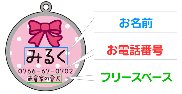 【お名前】【お電話番号】【フリースペース】の部分に入れたい文字を、必ず備考欄に記入しご注文下さい。