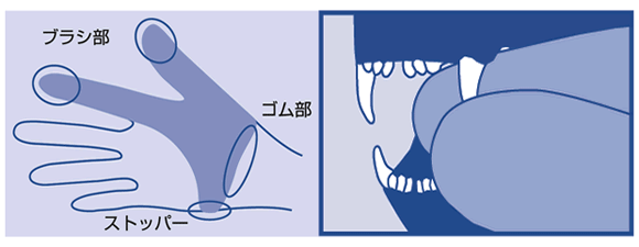 歯磨きは、指の腹部分で、歯と歯ぐき、また、その境目を丁寧に擦るようにします。