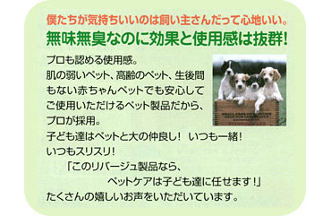ペットにはもちろん、飼い主さんにも環境にもやさしいトータルケア製品です。