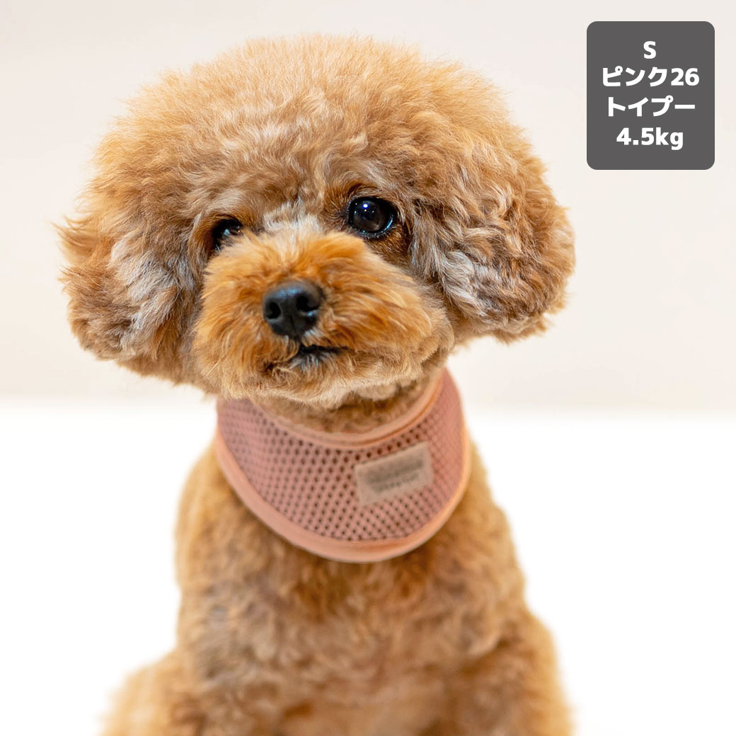 トイプードル4.5kg(首26/胴40.5/丈30cm)の里梨衣ちゃんはピンク26のSを着用