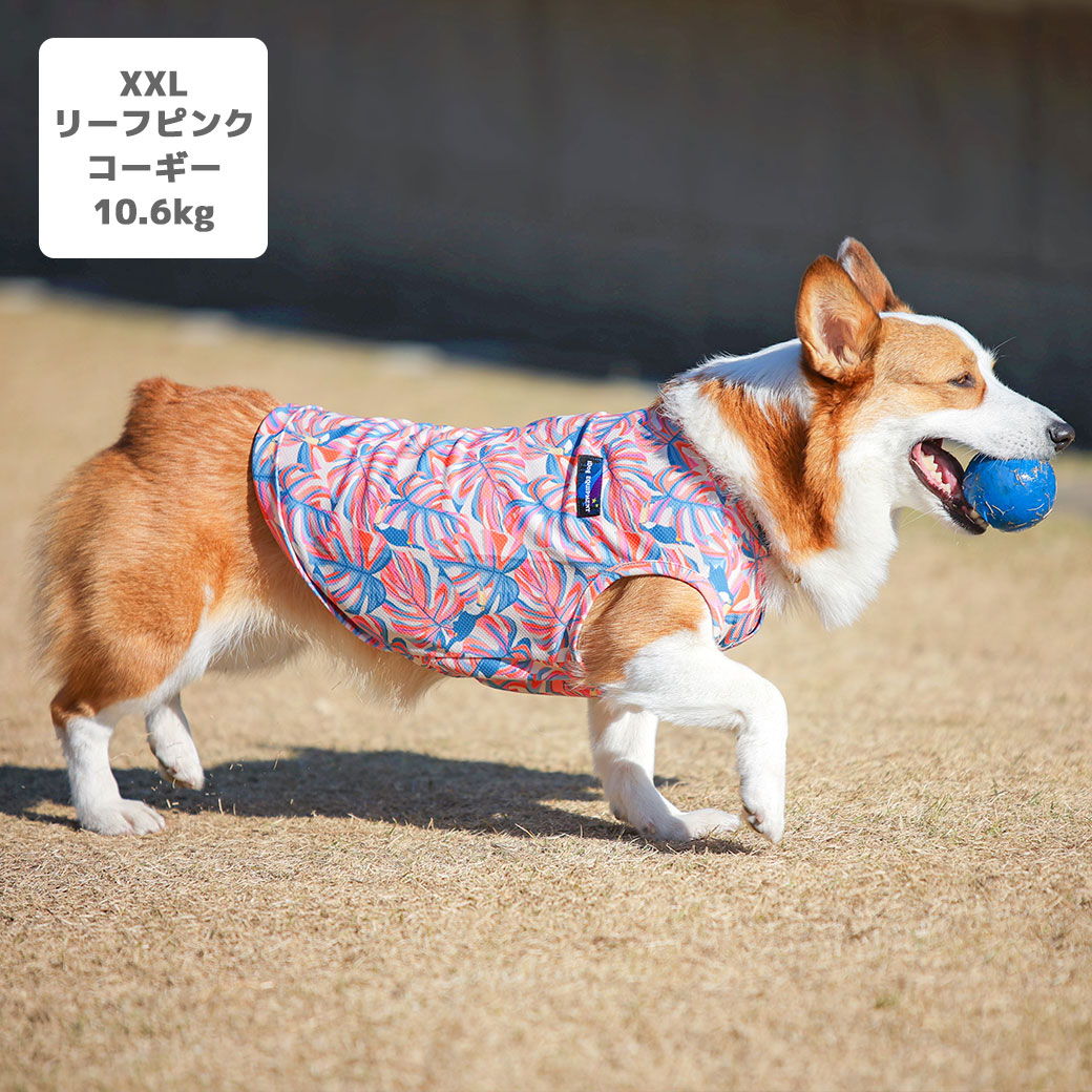 コーギー10.6kg(首36/胴51/丈37cm)のラテちゃんはリーフピンクのXXLを着用