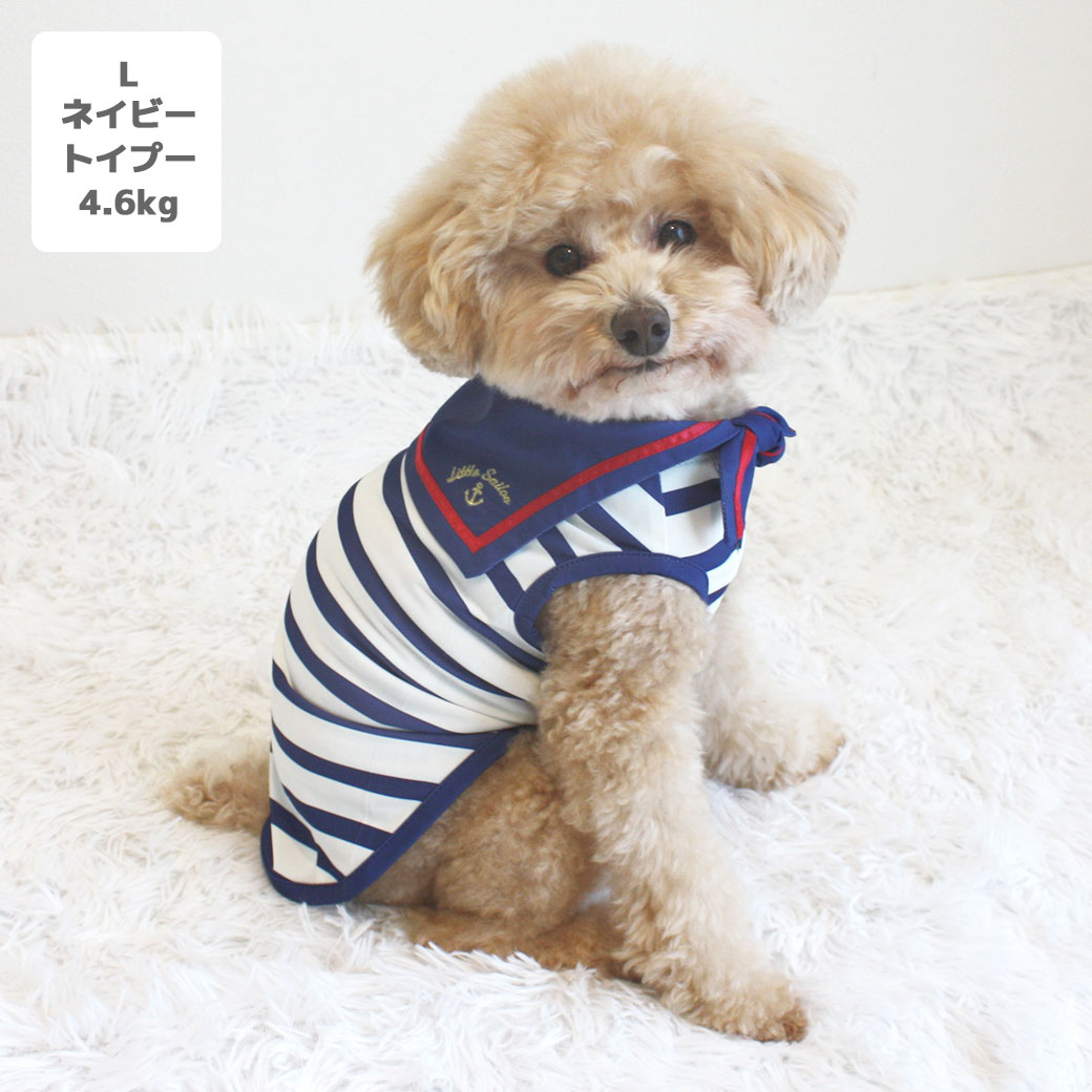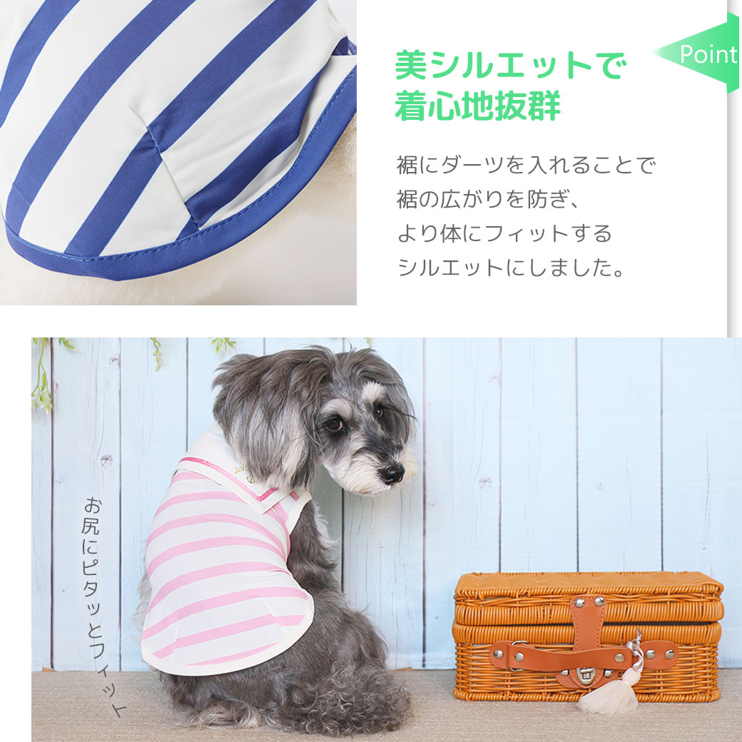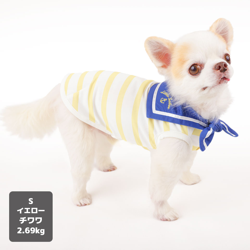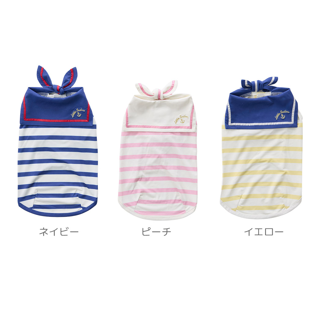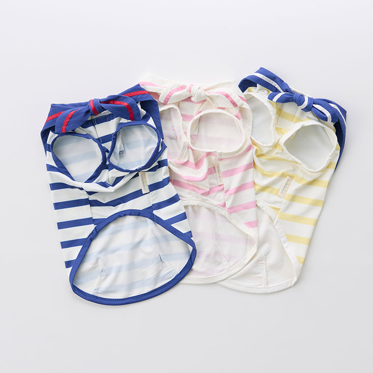 接触冷感+防蚊のダブル機能で愛犬を守る。 マリンテイストがかわいいこだわりのセーラータンク。