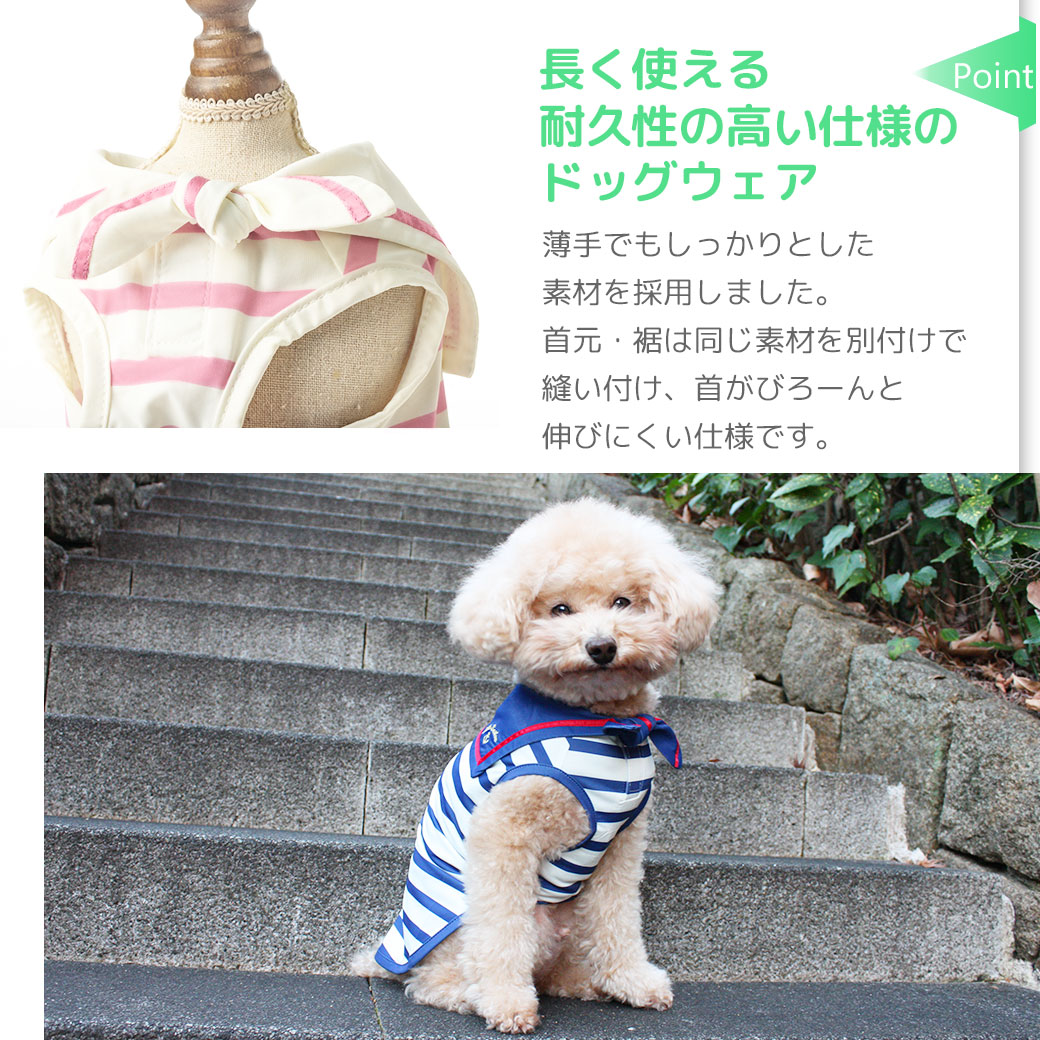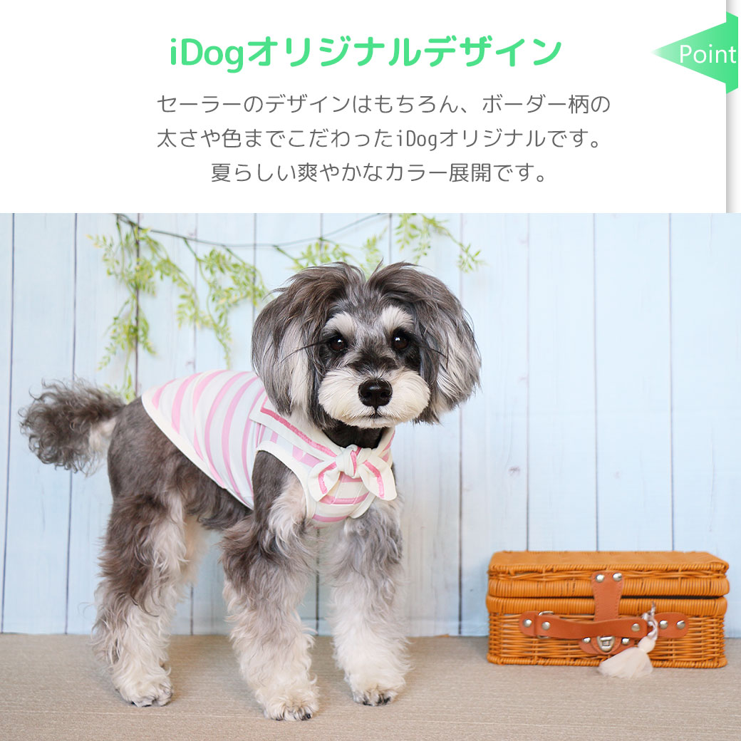 セーラーのデザインはもちろん、ボーダー柄の太さや色までこだわったiDogオリジナルです。