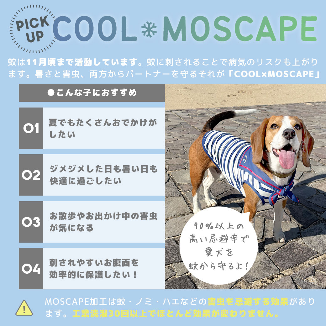 防蚊MOSCAPE…90%以上の高い忌避率で愛犬を蚊から守ります。
