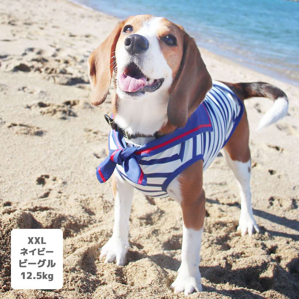 ビーグル12.5kg(首33/胴58/丈40cm)のほたてくんはネイビーのXXLを着用