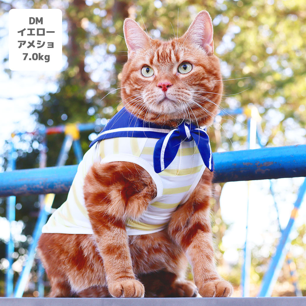 アメショ7.0kg(首28/胴48/丈28cm)のタラくんはイエローのDMを着用