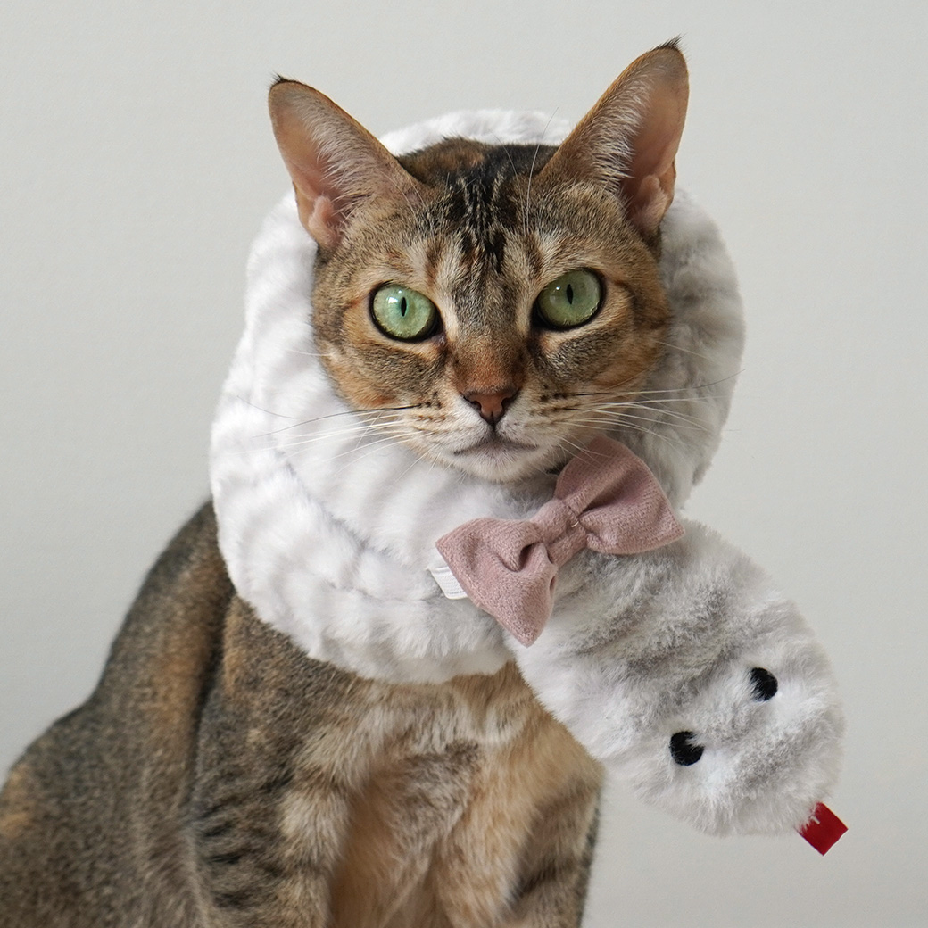 2025年の干支は「巳」。 へびさんモチーフのふわふわなペット用マフラーです。