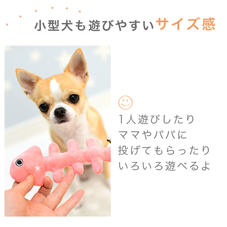魚の骨をイメージしたデザインがかわいい犬用のおもちゃです。