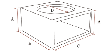| サイズ | 高さ(A) | 奥行き(B) | 幅(C) | 穴の直径(D) |