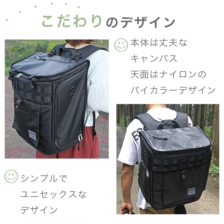 シンプル&タフなスクエア型リュックキャリー。 ユニセックスでスタイリッシュなデザイン。