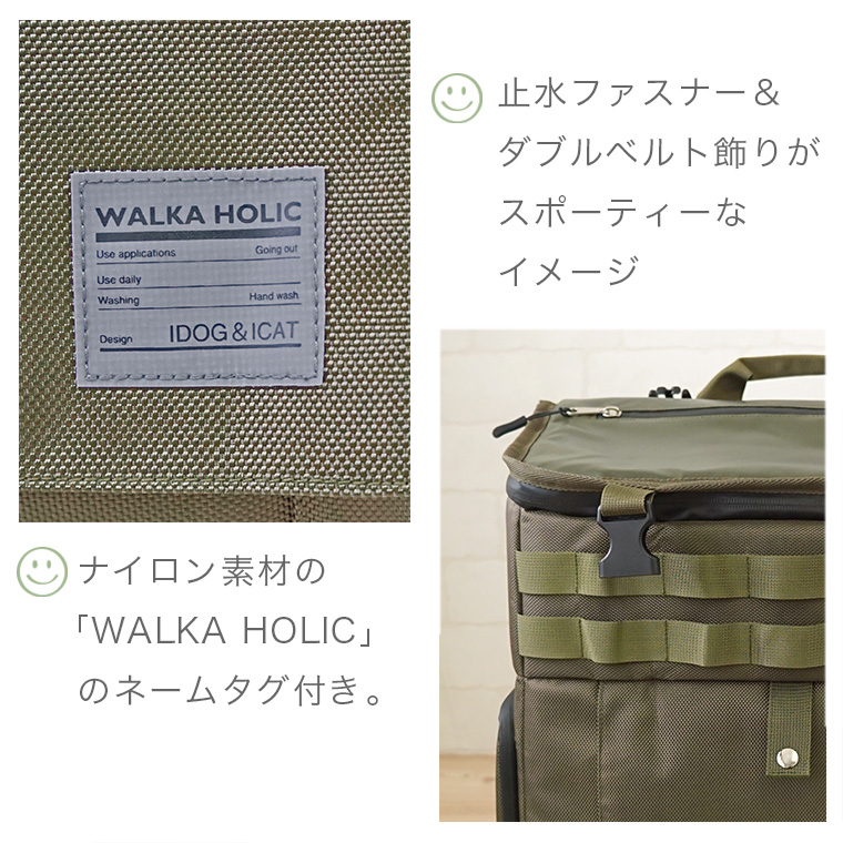 バッグ正面にはナイロン素材の「WALKA HOLIC」のネームタグ付きです。