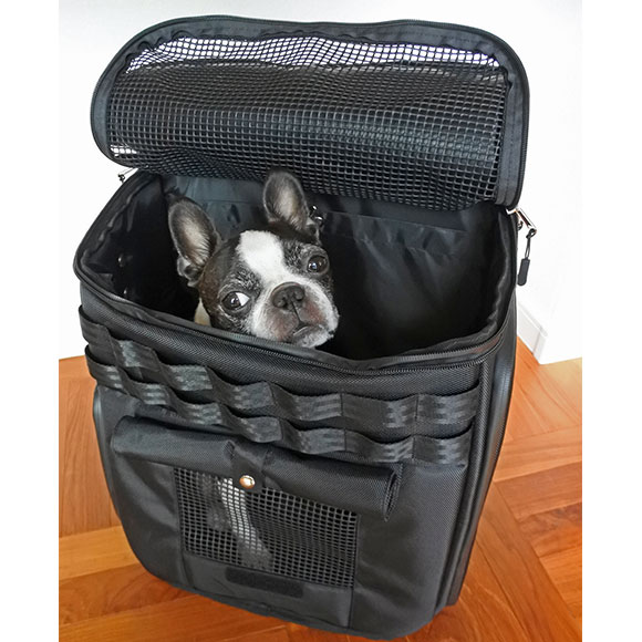 天面と側面の2箇所に入口があるので出入りしやすいです。 天面にはメッシュのカバー、バッグ正面はメッシュの小窓になっており 中に入っているペットからもオーナー様や外が見えて安心です。