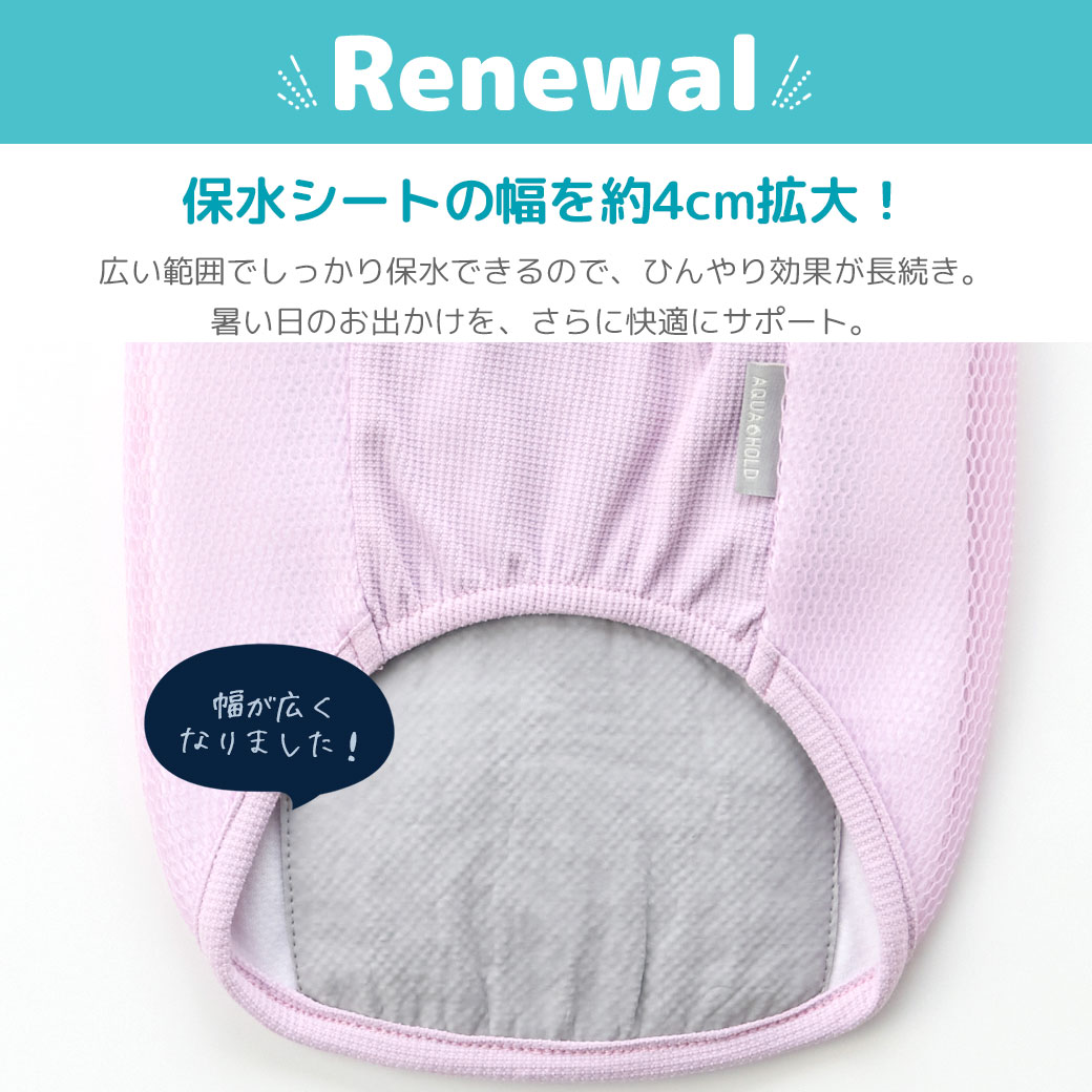 暑い日の外遊びにピッタリの犬用冷却クールタンクです。 保水生地と空冷機能でひんやり心地よく冷却し続けます。お出かけ前に水を含ませてご利用下さい。 肩開き仕様の新デザインで着せやすく、保水範囲も広がってさらに快適に!お腹側はストレッチする素材でフィット性が向上してさらにひんやり。 特許取得構造を利用したひんやり「冷却」タンク「AQUA HOLD PREMIUM」で新感覚のひんやり感を実感してください 。