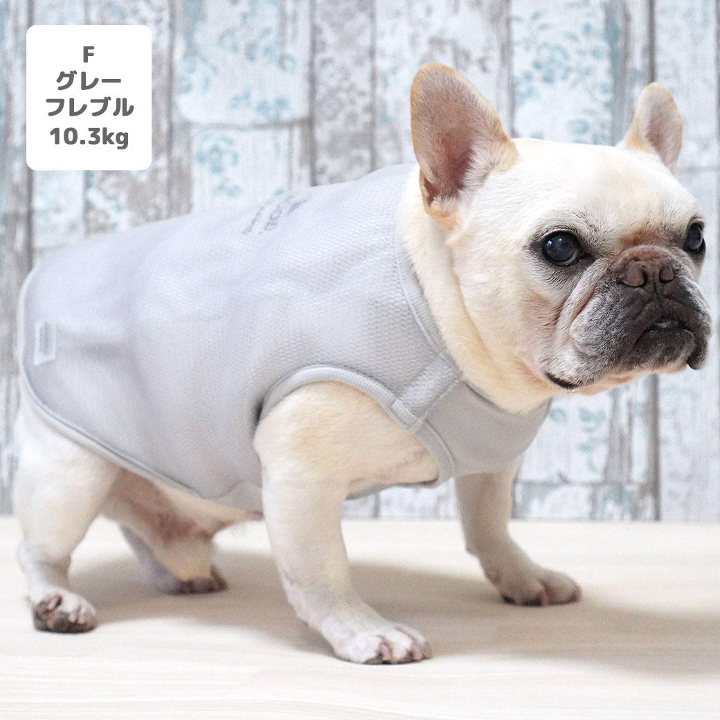 フレブル10.3kg(首38/胴56/丈34cm)のブランくんはグレーのFを着用