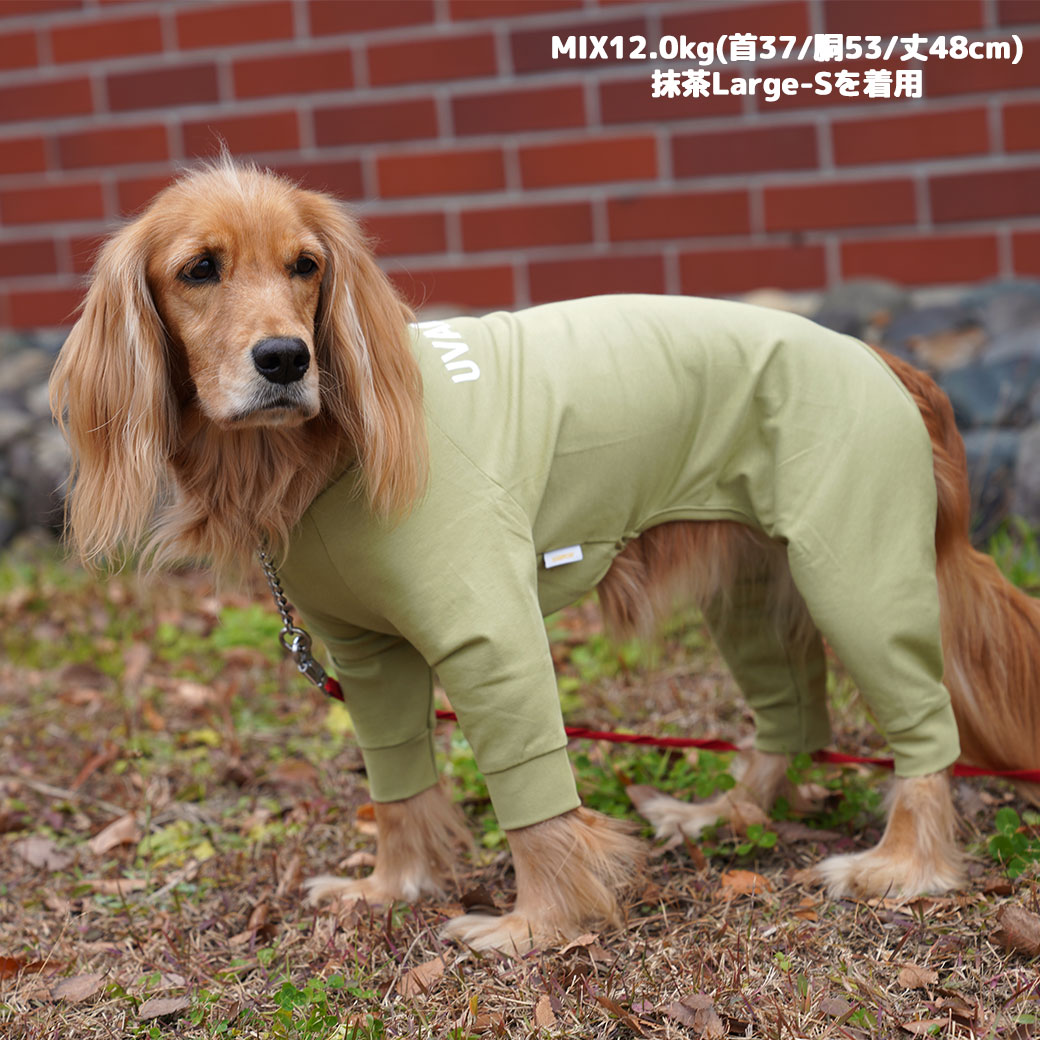 MIX12.0kg(首37/胴53/丈48cm)のはちみつちゃんは抹茶のLarge-Sを着用