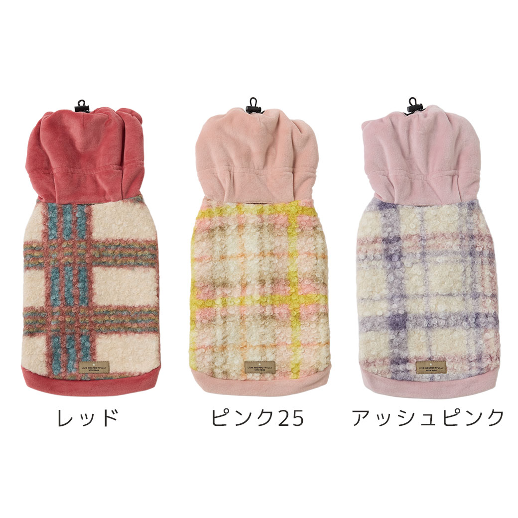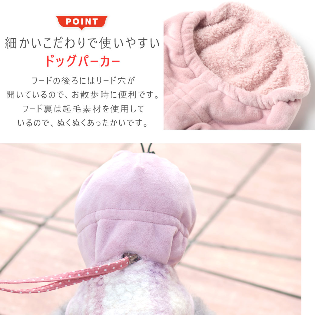 厚みのあるしっかりとした素材のあったか〜い愛犬用パーカー。スヌード一体型で顔周りまでしっかりガードします。