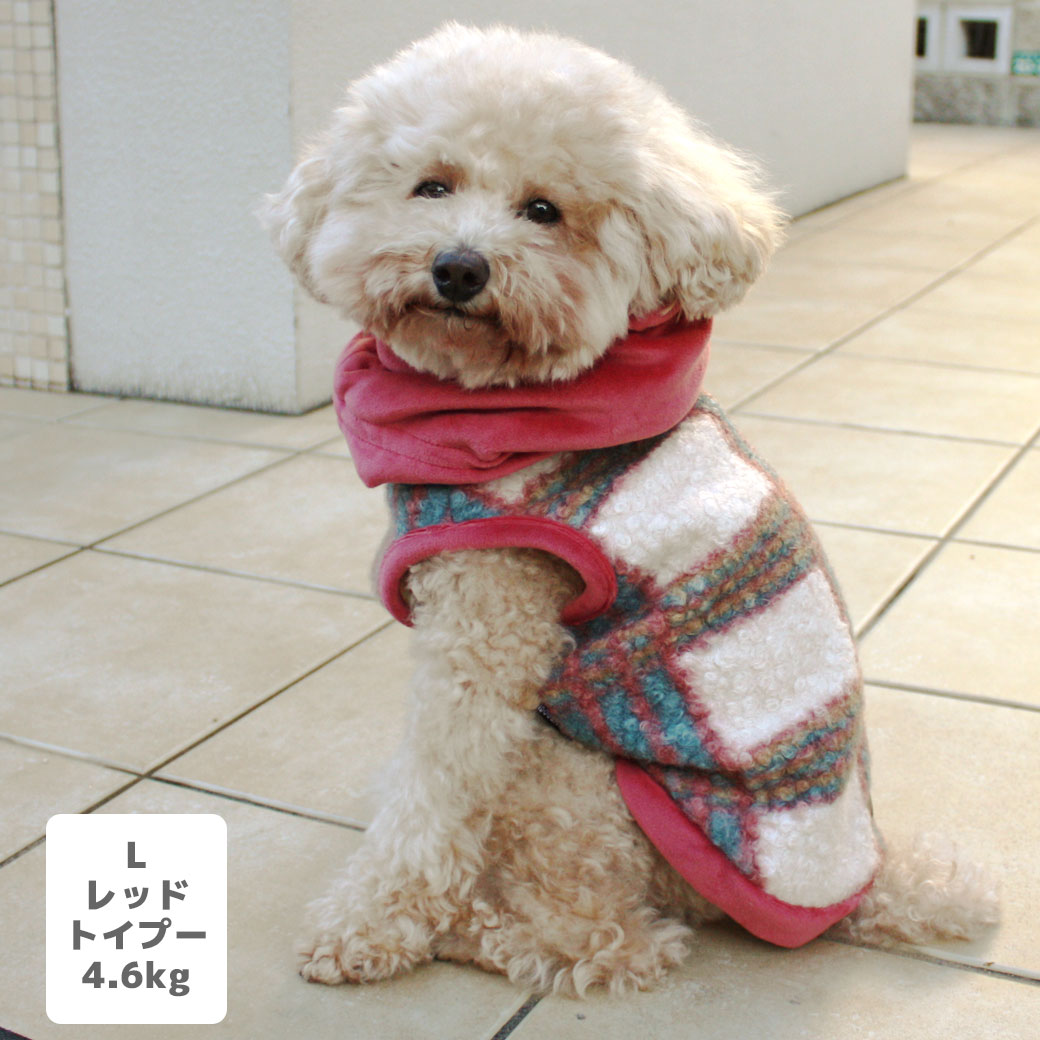 トイプー4.6kg(首25/胴40/丈34cm)のフク丸くんはレッドのLを着用
