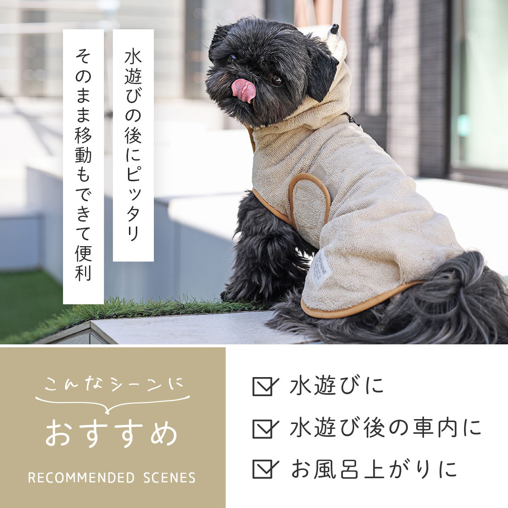 水遊びが大好きなパートナーにピッタリの愛犬用バスローブを是非お試しください。