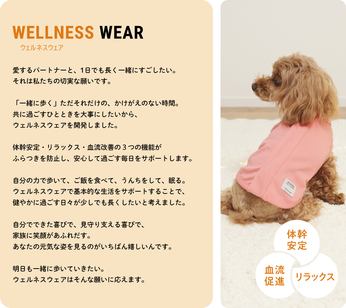 明日も一緒に過ごしたい。ウェルネスウェアはそんな願いをサポートします。