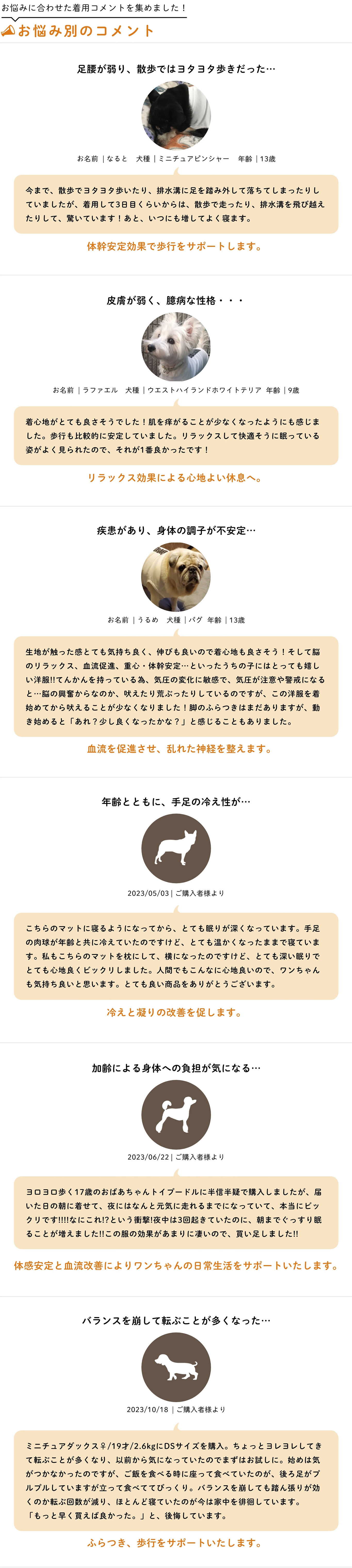 シニア期や病気のペットが快適に過ごせるように開発した新しい機能性ウェア「unage」(アンエイジ)シリーズです。「IDOGウェルネスウェア」は高機能素材を固着したドッグウェアで、着用する愛犬・愛猫にリラックス状態、血流の促進、体幹安定効果による歩行時の転倒・ふらつきを予防する目的で企画しました。