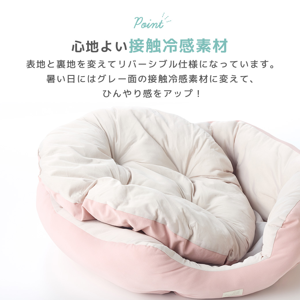 触れるとひんやりする接触冷感素材は、優しい触り心地で冷えすぎる心配もなく、ペットが快適に睡眠をとることができます。