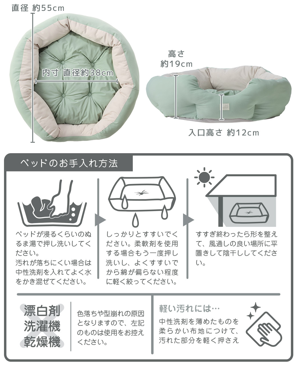 ※全体を洗いたい場合は、中性洗剤を使用し手洗いで陰干ししてください。