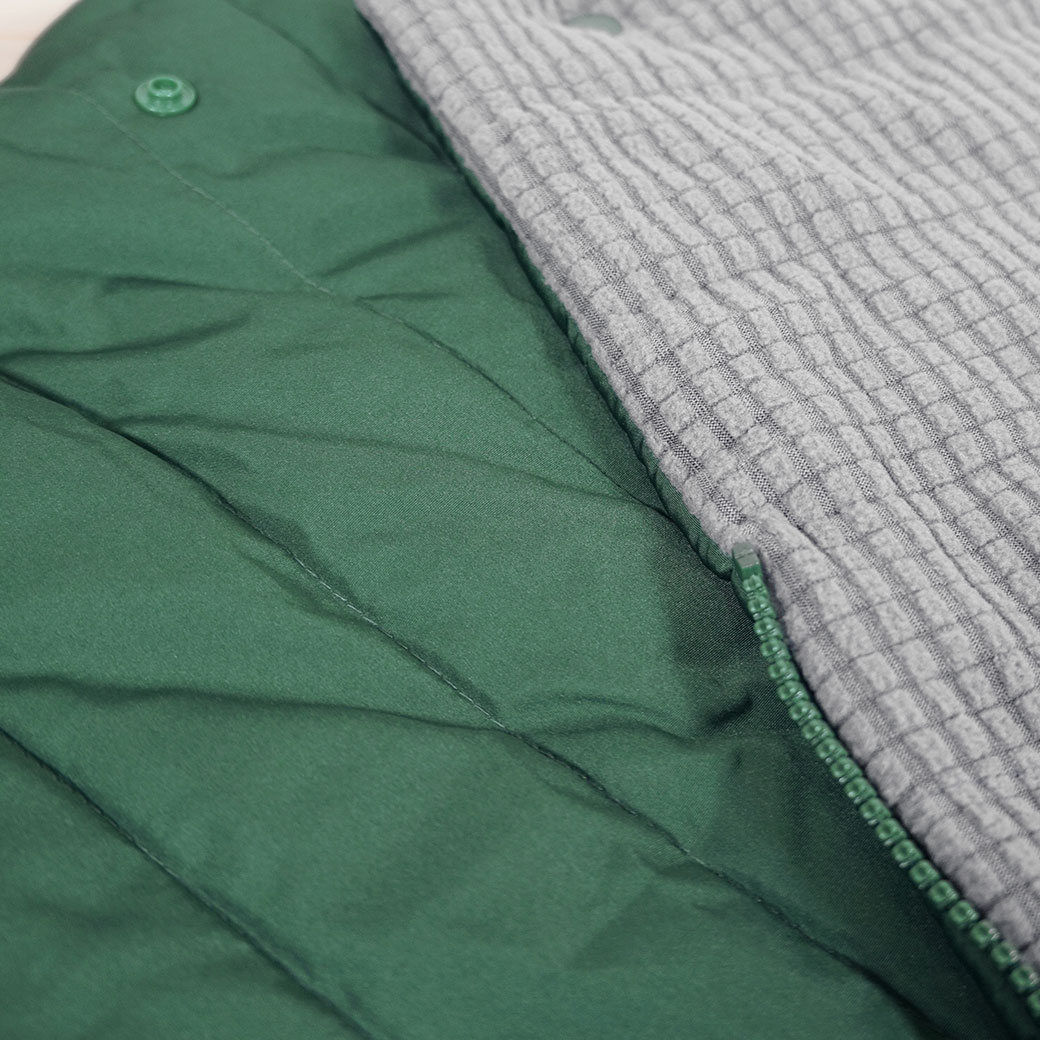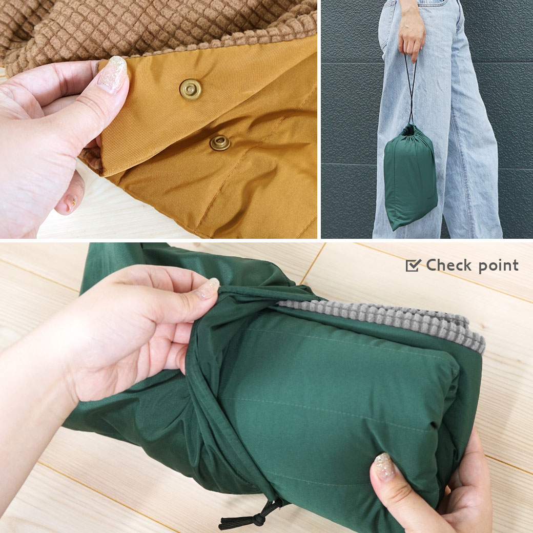 上部のスナップボタンをとめると寝袋として