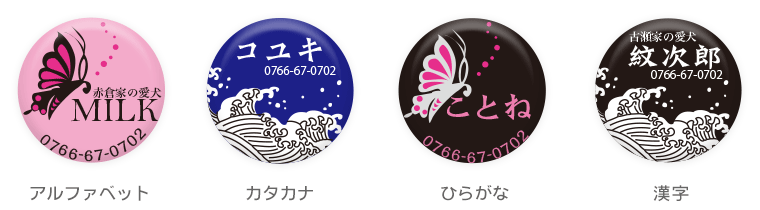 愛犬・愛猫が万が一、迷子になったときのために… iDogオリジナル柄のかわいい迷子札はいかがですか♪ 小さなコイン型の丸いプレートに可愛い絵柄が入っていて、 一見迷子札には見えないくらい、とってもオシャレです! 絵柄の中に、ワンちゃんの名前や電話番号などを 入れて、貴方だけの1枚をお作りします。