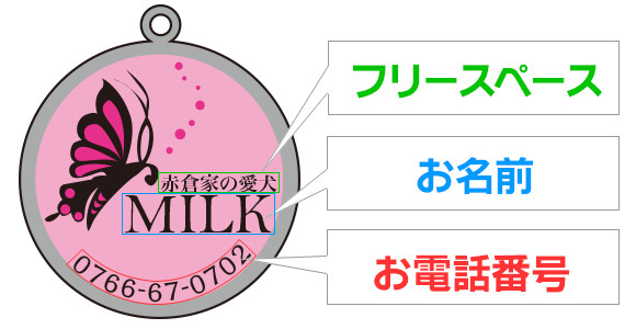【お名前】【お電話番号】の部分に入れたい文字を、必ず備考欄に記入しご注文下さい。