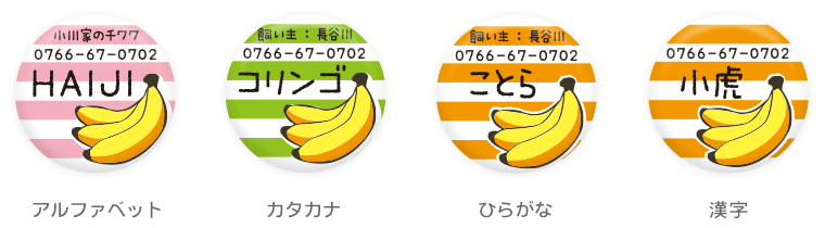 愛犬・愛猫が万が一、迷子になったときのために… iDogオリジナル柄のかわいい迷子札はいかがですか♪ 小さなコイン型の丸いプレートに可愛い絵柄が入っていて、 一見迷子札には見えないくらい、とってもオシャレです! 絵柄の中に、ワンちゃんの名前や電話番号などを 入れて、貴方だけの1枚をお作りします。