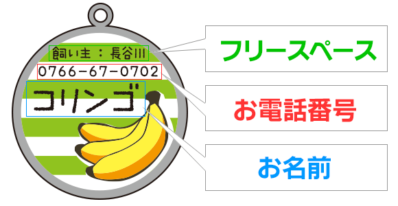 ハイジ 3.0kg大好きなバナナのネームタグができて嬉しい!食いしん坊なボクにはピッタリのデザインだよ!