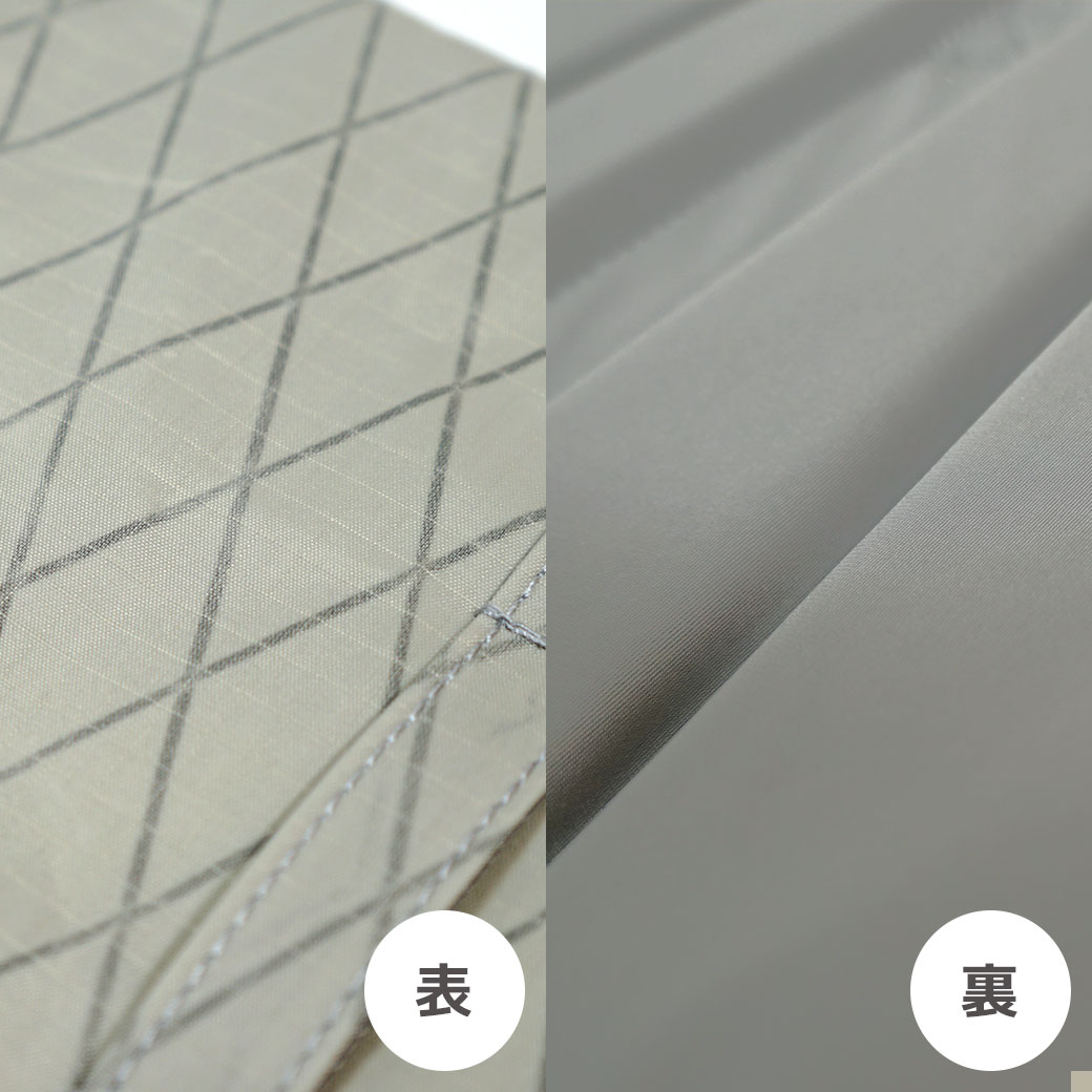 - 表地:X-PAC(表:ナイロン100%、裏:ポリエステル100%)、裏地:ポリエステル100%、ポリスチレン