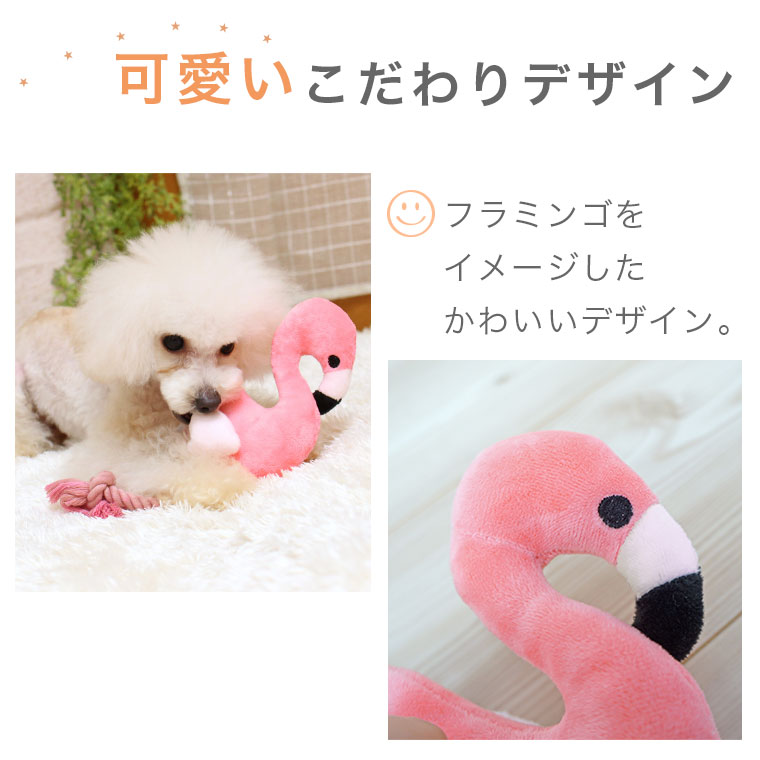 フラミンゴ型の犬用布製TOY。 鳴き笛入りで楽しいぬいぐるみタイプのオモチャです。
