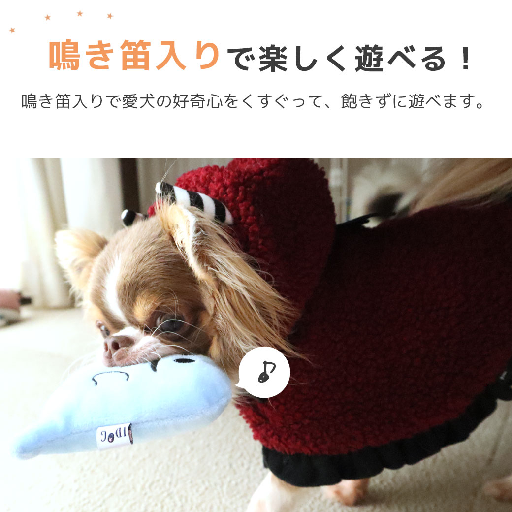 鳴き笛入りで愛犬の好奇心をくすぐって、飽きずに遊べます。